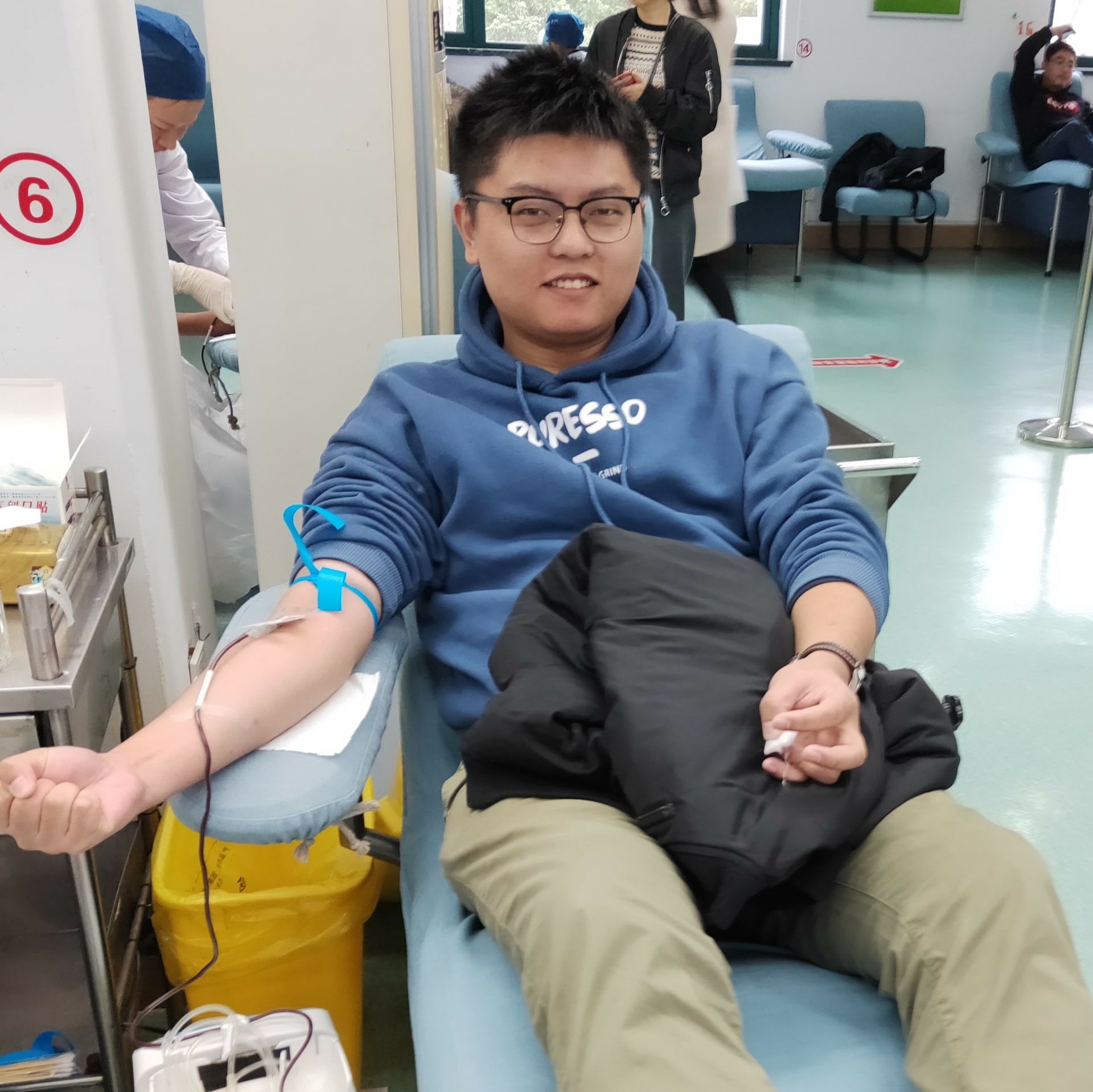 虽然天气寒冷,但大家热情高涨。参加献血的员工中既有久经血场的“老司机”,也有初次见血的“新手”,随着填表、验血、初检、登记、采血等一个个步骤的完成,满含爱与奉献的热血奏着生命的赞歌,从员工们的手臂缓缓流向储血袋,流向爱的远方。热血有限,真情无价,他们用行动诠释了大爱无疆——我不知道你是谁,但我知道你需要我的挽臂!